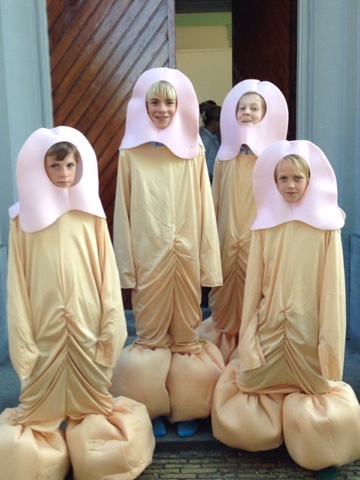 Daarna taart en champagne. Rondgevaren op twee open pramen. Pracht weer. Dus dat was genieten. Rond 19.00 aan het diner. Veel speeches en met als hoogtepunt vier neefjes in piemeloncies :-).