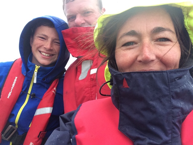 In het Kimstergat lopen we 45 minuten voor hoog water bijna vast. Het is doodtij. We schuiven over het wantij. In de Oost Meep is het helaas niet meer bezeild. De buien zetten door. Met stroom tegen beleven we even een een pittig tochtje. Gelukkig kunnen we in de Riepel volvallen en komt iedereen even op adem. Onder Terschelling is de bui afgezwakt en is het goed te doen. Om circa 19.30 lopen we Terschelling binnen. Iedereen doorweekt. Behalve Minke. Die zat de hele tocht binnen te lezen.