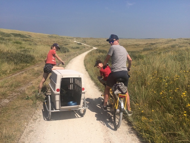 Het wordt een prachtige week met brandende zon en plus 25 graden. We gaan veel naar het strand. Huren fietsen. Hebben de zonnetent hard nodig!