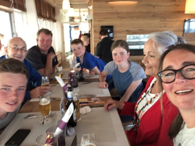 Eenmaal geparkeerd en gesetteld in het hotel drinken we champagne op het terras van het hotel om de goede uitslag van opa te vieren. En ook een beetje Minke’s verjaardag. Ze krijgt een Leatherman zakmes van opa en oma en is daar heel blij mee. Sommige meisjes krijgen op hun zestiende gaatjes, Minke boort ze liever 😉 Terug naar de boot. Maar eerst een bezoekje aan de Penny om vooral veel borrelhappen in te slaan. Om 19.00 eten we met z’n allen bij Ney’s, het havenrestaurant, erg leuk en lekker. Een aanrader.