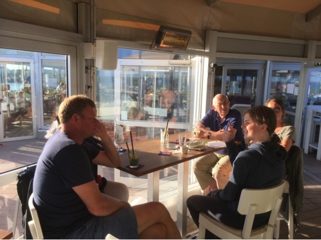 S ochtends beetje uitgeslapen en gedoucht. Ties is jarig dus na het ontbijt aan de taart en koffie op de Zeester!