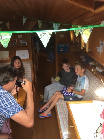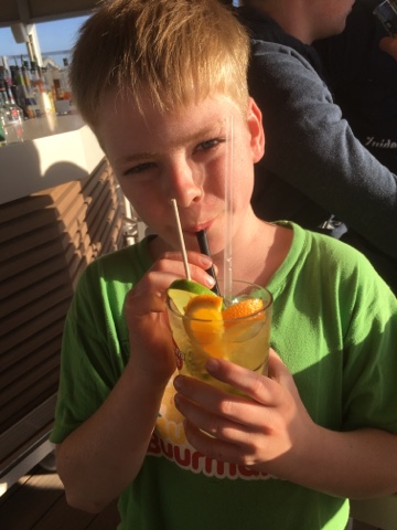 En natuurlijk tijd voor een cadeautje! Bastiaan rommelt aan boord. Jacque gaat even met Minke naar de Milchbar waar opa en oma zitten. Weer heerlijk terrasweer. De Milchbar is wel de plek waar de rich and notsofamous blijkbaar verzamelen. Hoog gehalte geblondeerde Guccibags 🙂Â