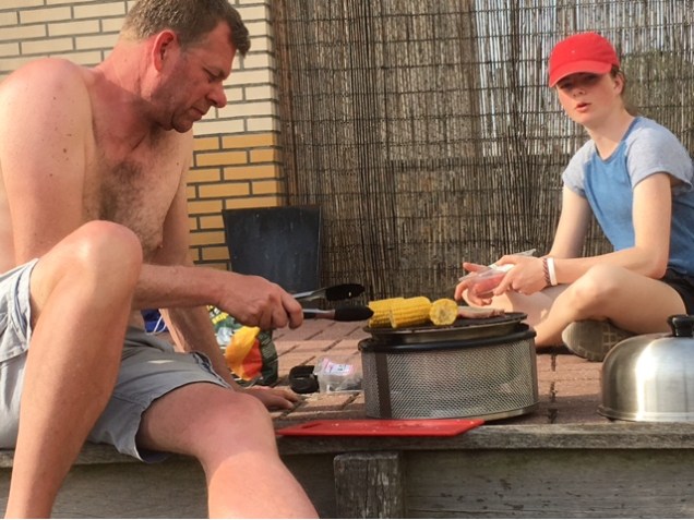 Lekker uitgeslapen. Het is weer prachtig weer. Bastiaan en Jacqueline wandelen met de hond, drinken koffie bij de bakker op t terras. Broodjes gehaald bij de broodjuwelier.