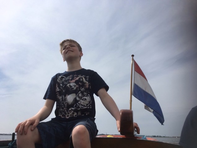 Bouwe roeit nog even na het eten.