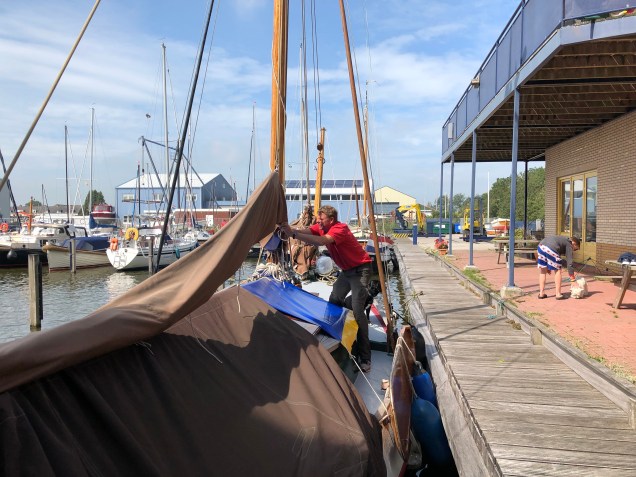 Ontbeten en toen rustig aan uitgevaren. Bouwe motort mee. In de Intemasloot zeil gehesen en toen heerlijk rustig richting de Hop gedobberd. Bouwe vaart met een kleine omweg vooruit.