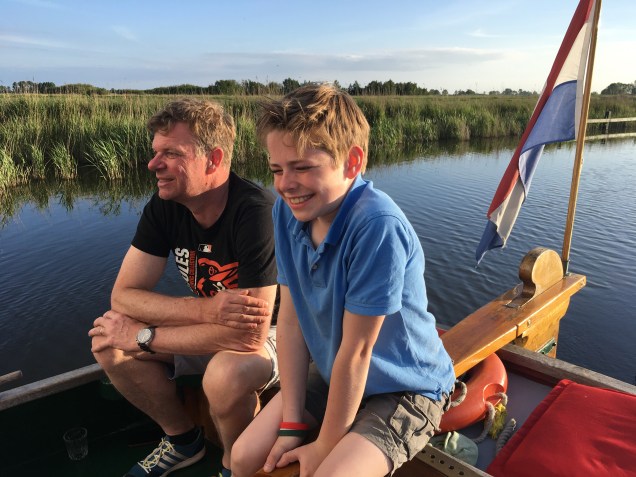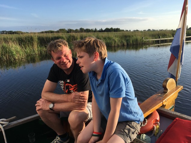We eten heerlijke lenterisotto. We varen via het zelfbedienbaar bruggetje. Brugwachter Bouwe roeit vlotjes naar de brug en regelt alles!