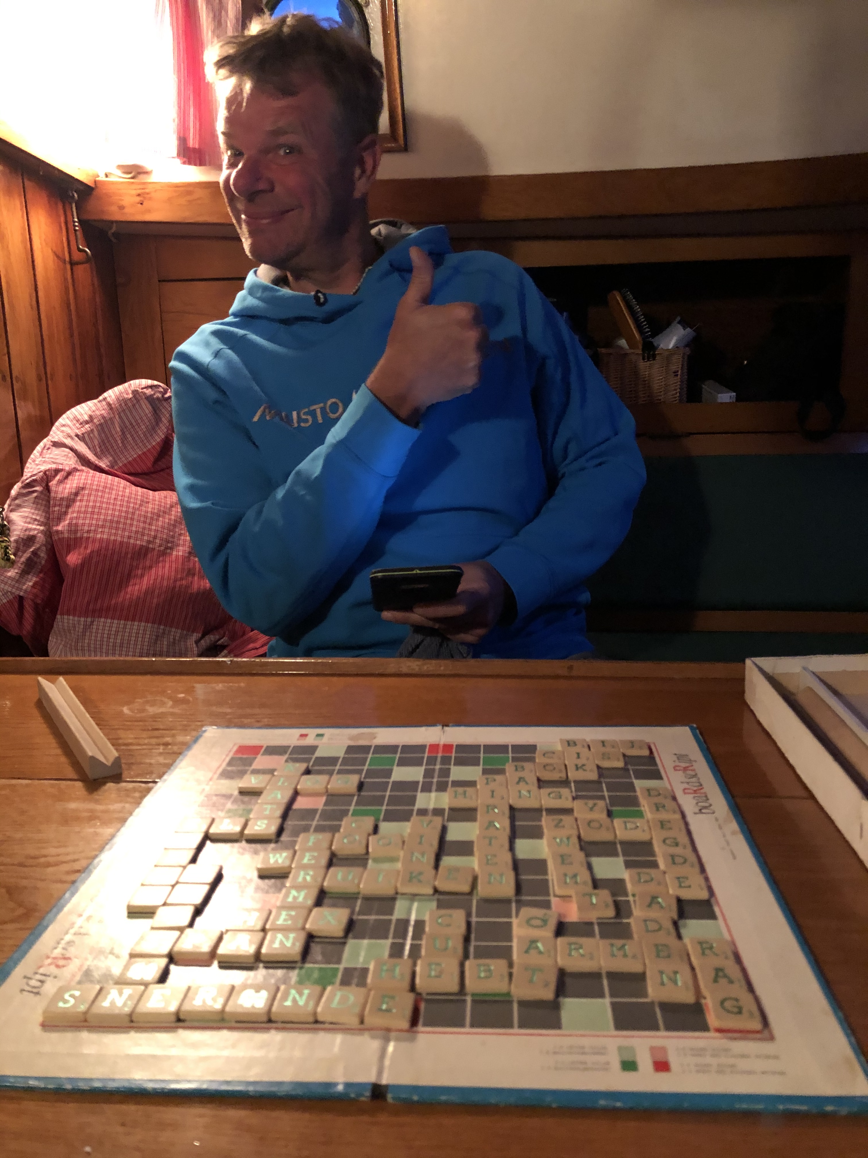 Bouwe vaart met het jolletje met twee buurjongens. We eten een ijsje. S avonds aan boord gegeten en potje scrabble gespeeld. Bouwe en Jacque winnen van Bastiaan. Dat mag in het blog!